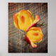 rosenknopp av söt gult med orange högdagrar blomman på en blommigt som utformats av Susan på barnboard. Besök Smilins Ögon Treasures Poster för att se mer blomma- och naturfotografering bilder.