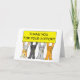 Fyra tecknader katt av olika färg, som står upp på baksidan av tassar och bär gult rosett band. Katterna håller upp en stor rektangulär banderoll med gulten "Tack för ert stöd". Bilden ställs in mot en vit bakgrund.
