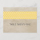 Elegant och sofistikerat vykort för Bordsnummer av Rustic Quatrefoil med en vintage med texturerad bakgrund och en modern gräns i mönster i gult. Enkel att anpassa, lägg helt enkelt till rätt bordsnummer i den text fält tillhandahåller. Klicka på Anpassa om du vill söka efter fler anpassningsalternativ.