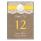 Bröllopsamlingen i gult och dollar är en fantastisk design med en underbar rustik-överlappningseffekt med en romantisk vintage vit snöre-effekttrim avslutat med en bedövande sand-dollar och ett gult-band. Dessa kort för bordsnummer kan vara personlig för ditt särskilda tillfälle och skulle göra perfekten bord till en central punkt för bröllop, möhippa, förlovningsfest, födelsedagsfest och mycket, mycket mer. *Observera att Zazzle endast säljer tryckta produkter så att den här artikeln inte har något riktigt material som täcker snöre, sand-dollar eller band. *** HUR DU ORDER *** Anpassa och lägg till varje bordsnummer-kort i kundvagnen, en i taget. Zazzle har för närvarande inget system för att tillåta någon anpassning av produkterna efter det att en beställning har gjorts.