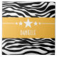 Trendig och modern Sassy Star Zebra Tile med en chic svart och vit zebra tryck-bakgrund och en fet gult gräns med en roligt stjärnmotiv. Den här giftiga designen kan anpassas med den personlig du väljer. Klicka på Anpassa om du vill söka efter fler anpassningsalternativ.