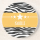 Trendig och modern Sassy Star Zebra Sandstone Underlägg med en chic svart och vit zebra tryck-bakgrund och en fetstilt gult gräns med roligtens stjärnmotiv. Den här giftiga designen kan anpassas med den personlig du väljer. Klicka på Anpassa om du vill söka efter fler anpassningsalternativ.
