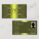 Gult Shimmer Oliv grönt med Monogram och Photo Visitkort