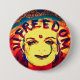 Gammal symbol med en ny vrid. Gult ansikte med färglös, ljusstark bakgrund i rött, orange och grönt med ord "Frihet" som tränger in i det. Frihet genom tårar när det finns uppdämda strömmar över ansikte. Marscherar hon på en protest? Smilrebell, leende för frihet!