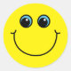 Den leende gulten emoji ansikte på dessa klistermärken har blått ögon.