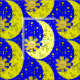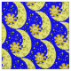 Gult Sol Måne Stars Blue Fabric Tyg