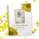 Inbjudan gäster som lämnar en anteckning till minnet av din älskade efter att ha passerat med den heliga Gulten Sunblommor Firande i Life Funeral Guest Bok. Den här bärbara anpassningsbarna med söt blomsterminnen har blommar med gult solros som fäster hörnen med vit bakgrund. Anpassa den med födelsedatum och dödsdatum, namn och bild i den avlidne.