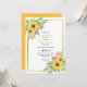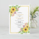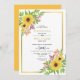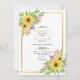Gult solblommor och bröllopsinbjudan till guld ram blommigt. Denna elegant utformar visningar med vattenfärgen guld ram och gult solblommor och fall löv och bär på de övre delarna av den lämnat högerna och grund och texten i guld och svart.
