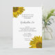 gäster från inbjudan till en före giftermål party som hedrar Bride att vara med den söt Gulten Solblommor Inbjudningskort för möhippan. Den här enkla men elegant anpassningsbarna blommar sommar- eller hörappduschen inbjudan har en blommigt fotografi av en gult solblommor som fäster hörnen med vit bakgrund. Perfekt för ett tema för sommarträdgården party firande.