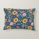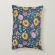 Söt blå bakgrund med gult solblommor och rosa blommigtar på den här kavajkudden i soffa. Lumbalens rektangulära kudde.