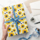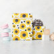 Mönster av gult solblommor på vit bakgrund Solblommor i matris, ett glatt mönster att förmedla. Solrossolrosolja: Blommar Strålning på vit kanvas. Solros, mönster, sömlös, sol, deka, vintage, vår, vattenfärg, skörd, bakgrund, mat, sommar, bröllop, papper, natur, illustration, löv, vit, blommigt, skönhet