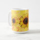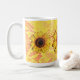 Min ursprungliga digitala grafik finns på detta vackra mugg, som består av ett blommönster från vintagen deka-eran som bakgrund för stora solrosblommor i gult. Det här är 15-uns mugg, bara perfekten storlek för ditt bryggkaffe eller te - eller till och med hett choklad! Det skulle vara en underbar gåva och man kan lägga in paket kaffe, tepåsar eller hett choklad i - eller en liten växt - för att göra extra speciellt för din älskade.