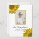 Inbjudan gäster för att minnas dina kära ett år efter att de passerat med eleganten och den heliga Gulten Solros Blommars Dödsjubileumsinbjudan. Den här klassens anpassningsbar blomma firande i livets minnesmärke inbjudan har söt gult solrosblommor blommar som fäster hörnen med vit bakgrund. Anpassa den med bild, namn i det avlidna data och födelse och död. Finns som en utskriven inbjudan att skicka och/eller som en digital nedladdning för att enkelt kunna dela digital online.