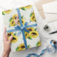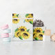 Omslagning papper med en söt blombukett med glada gulter solblommor och grönt löv. Färsk och roligt.