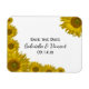 Anpassa den söt solrosmagneten Kant Flexible Magnet med bridens och brudgummens namn och deras sommarceremonidatum eller sommarceremonidatum i giftermål. Den här eleganten anpassningsbar blommigt bröllop behålla innehåller den böjbara magneten gult solrosblommar som fäster hörnen med vit bakgrund.