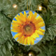 Gult Solros och Bin på Blå himmel - Sommar Julgransprydnad Keramik