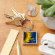 Gult Solros på Blå Bröllop Fyrkantig Silverfärgad Nyckelring