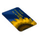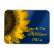 Lägg märke till sommaren eller falla giftermål med den söt Gulten Solros på Blå Bröllop spara datum flexibla magnet. Den här elegant anpassningsbarna botanisk behålla i bröllop innehåller datumets böjbara magnet ett blommigt fotografi av en gult solros på blå bakgrund.