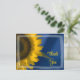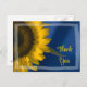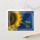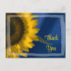 Anpassa den söt Gulten Solros på blått vykort med ditt personliga tack, uppskattning och tacksamhet. Lämplig för använda för gåvor som tas emot efter en sommar- eller födelsedag, förlovningsfest, möhippa eller bröllop. Den här elegantens anpassningsbar botaniskt tackkort har ett nära blommigt foto av en vibrerande gult solros på blå bakgrund.