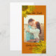 Meddela din sommar eller falla kommande nuptialer med den söt Gulten Solros på Bröllop spara datum fotokort för Orange. Dessa glada anpassningsbar giftermål-behålla har fotokortets datum en blommande gult solros som fäster hörnen med orangens bakgrund.