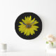 Gult Solros på svart bakgrund Stor Klocka