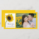 Skicka tankar om uppskattning och tacksamhet efter din sommar eller fall-förlovningsfest, möhippa eller påhitt med söt Solros på det vita fotoportet för Bröllop. Den här anpassningsbarna i elegant, bröllop, tack vare att du har ett fotokort med en närliggande blommigt av en gult solrosliknande blommar på stjälken i en vas av glas med en ljusvit bakgrund.
