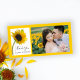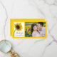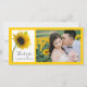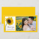 Skicka tankar om uppskattning och tacksamhet efter din sommar eller fall-förlovningsfest, möhippa eller påhitt med söt Solros på det vita fotoportet för Bröllop. Den här anpassningsbarna i elegant, bröllop, tack vare att du har ett fotokort med en närliggande blommigt av en gult solrosliknande blommar på stjälken i en vas av glas med en ljusvit bakgrund.