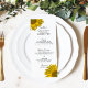 Anpassa den söt Gulten Solros Quinceañera Menu med detaljerna för den måltid du kommer att vid din lilla 15-födelsedagskalmiddag eller lunchkotten som lägger till sallad eller första kurs, in- eller andra kurs och dessert eller tredje kurs. Anpassa den med namn på 15-årsjubileet och dagen party. Den här menyn med anpassningsbar för elegant har gult solblommor som fäster hörnen med vit bakgrund.