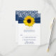 Svarskort på solrosblomma och blommigt av marin blå gult och bröllop OSA av band för blommigt. Du kan anpassa all text. Om du vill ändra texten användor du anpassningsalternativen. Du kan också ändra teckensnitt, storlekt teckensnitt, färg eller textplacering genom att välja att anpassa det. OBS! Detta är en plan, tryckt design utan 3D eller höjda detaljer.