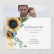 Unikt botaniskt bröllop spara datum inbjuder ramar med information om ditt meddelande med gräns av solblommor med vattenfärg i gultens nyans. Din spara och våra datumuppgifter anges i en snyggt av traditionell sans serif- och open face-typ i marinblått och kol-grått. Kortet återgår till förlovningens foto. Perfekt för höst-, rustik- eller trädgårdstema bröllop i september, oktober och november. Om du vill se fler utformningar som detta kan du besöka VG-Inbjudningskort på Zazzle på www.zazzle.com/vginvites