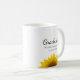 Klass 2025 studenten kaffe mugg med gult solblommor. Med svarta typografibokstäver lägger du till egen information. En underbar gåva till speciella student..