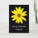 Ett muntert Mors dag-kort med "Lycklig Mors dag" på walesiska och ett foto av en gyllene Gult-solros på svart bakgrund.