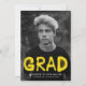 Urban, trendig foto tillkännagivande för studenten som innehåller student fotot med "Grad" i en gult, sprejfärgtypografi stil. Anpassa fronten genom att lägga till student namn, namn, studenten och skolår. Det moderna studenten-meddelandet återgår till att ha en gult-sprejfärg.