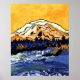 En målning av Mt Rainier med en ljusstark gult.