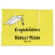 En gradsockel är ovanför anpassadet student namn i vit text på gultens bakgrund. Den svarta texten säger Grattisar. Du kan anpassa årsklass.