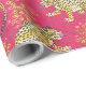 Gult Tiger On Rosa-Blommigt Presentpapper