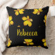 Lägg till ditt namn på den här gulten med torra löv på mönster-design med svart bakgrund.