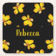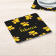 Gult, torrt löv, eget namn svart underlägg papper kvadrat