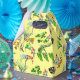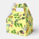 Färgdesign har en rad vattenfärgade tropiska fåglar, blommor och växter på ljusa gulters bakgrund