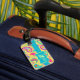 Identifiera ditt bagage, ryggsäck eller datorväska med den här roligten och snyggtens bagagemärke som innehåller stollig paisley mönster design och personlig med ditt monogram, initialer eller namn. Det här trendigets fetstilta färg har en solig gult med en turkotisk blå emblem för personanpassning. Ljusa, färska, moderna paisleys har en vacker konstnärlig utformning som omfattar inspirerande ord av Kärlek, Hope, Faith, Inspire, Cherish, Be Lycklig, Dream och bor i bakgrunden mellan paisleys. Modet Paisley-uppsamlingen, designad av Phyllis Dobbs, användor färg av teal, turkos, kalkgrönt, vin, gult, fuchsia och orange för att skapa en roligt och vimsey ta på sig det traditionella och populära paisley-motivet. Paislemotivet är tidlöst när det gäller att överklaga, men denna originalkonst är både trendig och contemporary. Fullständigt anpassade för anpassning med ditt eget ord för att lägga till ditt eget budskap.
