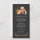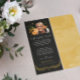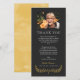 Tack för eleganten för ett minneskort med vit text mot en svart bakgrund, smakfull typsnitt och ett foto av din älskade. Lägg din älskade namn i gult över en gult andedräkt. Baksidan har en motsvarande vattenfärgsbakgrund.