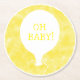 Pappra underlägg för utspädd gult. Vit ballong teckning med text. Tanken på babydusch.