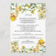 En blommigt i gulten och en utformning av botaniska vattenfärger. I den här vintagen i Vår och blommigt finns det olika blommar för blommor i gult färg. En botanisk illustration av Vår och sommarblommor i elegant som är idealisk för alla bröllop. Blomillustrationen skapar en elegant av land trädgårdskåran vid blommigt. Elegant bröllop-programkortsutformning med modern inslag. Det finns också möjlighet att matcha bröllopsinbjudningar och andra artiklar i kontorsartiklar.