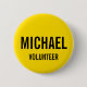 Gult Volunteer Badgefeaturing namn och titel i svart fet sans serif-teckensnitt på gultens bakgrund.