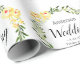 Gultens vattenfärgsblommor formas med Namn och Bröllop Datum i grått och svart text på vitt. Klicka på Redigera med Design Verktyg om du vill ändra färg och skriva stilar.