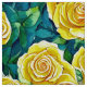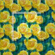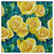 Fabric in a water color mönster av gammaldags, gul ros mot en lafy grönt bakgrund