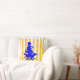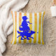 Gult White Rand Child Hund Blue Silhouette Dekorativ kudde Gult och vit färg rand med en tjej som går med en hund och en boll blå silhuett. Rustik Vintage, underbar för dekorering av baby eller barnrum