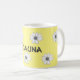 Blommönstrets Gult, eget namn Latte Mugg. Lägg till önskad namn. Cute-gåva till en vän eller släkting eller till och med till dig själv. Mer färg och stilar finns tillgängligt. Idealisk som en födelsedagspresent eller för varje tillfälle. Namn kan också bytas ut mot Morsa, syster osv. Klicka på Anpassa den här mallen "Information" om du vill anpassa den ytterligare.