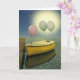 En foto-sammansättning, gult-båt och ballonger på ett sprickat reflekterande yta.