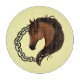 En bruna hästprofil med stamcellstårtor fungerar i en cirkel med en bakgrund av gulten